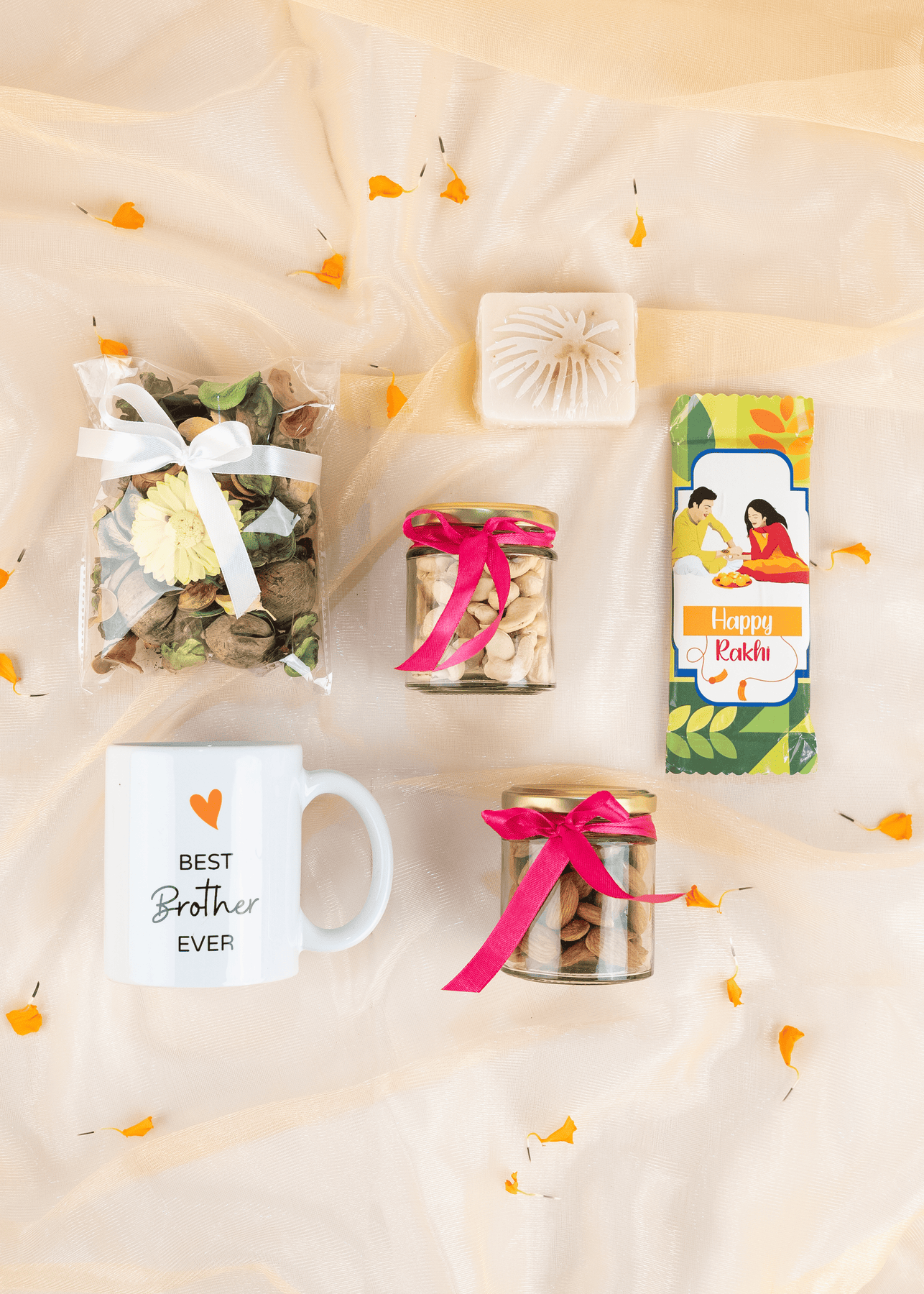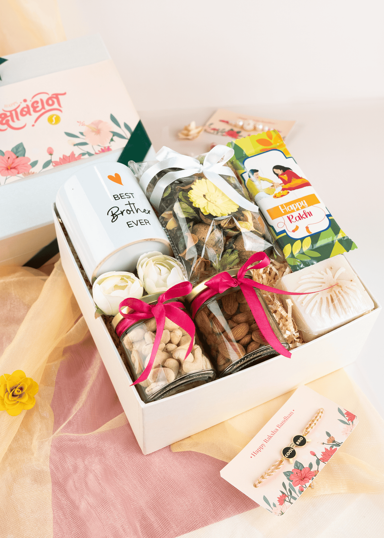 Our hampers are not just gifts – they are memories wrapped in warmth. Each rakhi hamper for bhaiya bhabhi or rakhi hampers for brother is crafted to blend tradition with modern charm. These hampers include a mix of wellness, taste, and keepsakes – making them ideal for all ages and preferences.