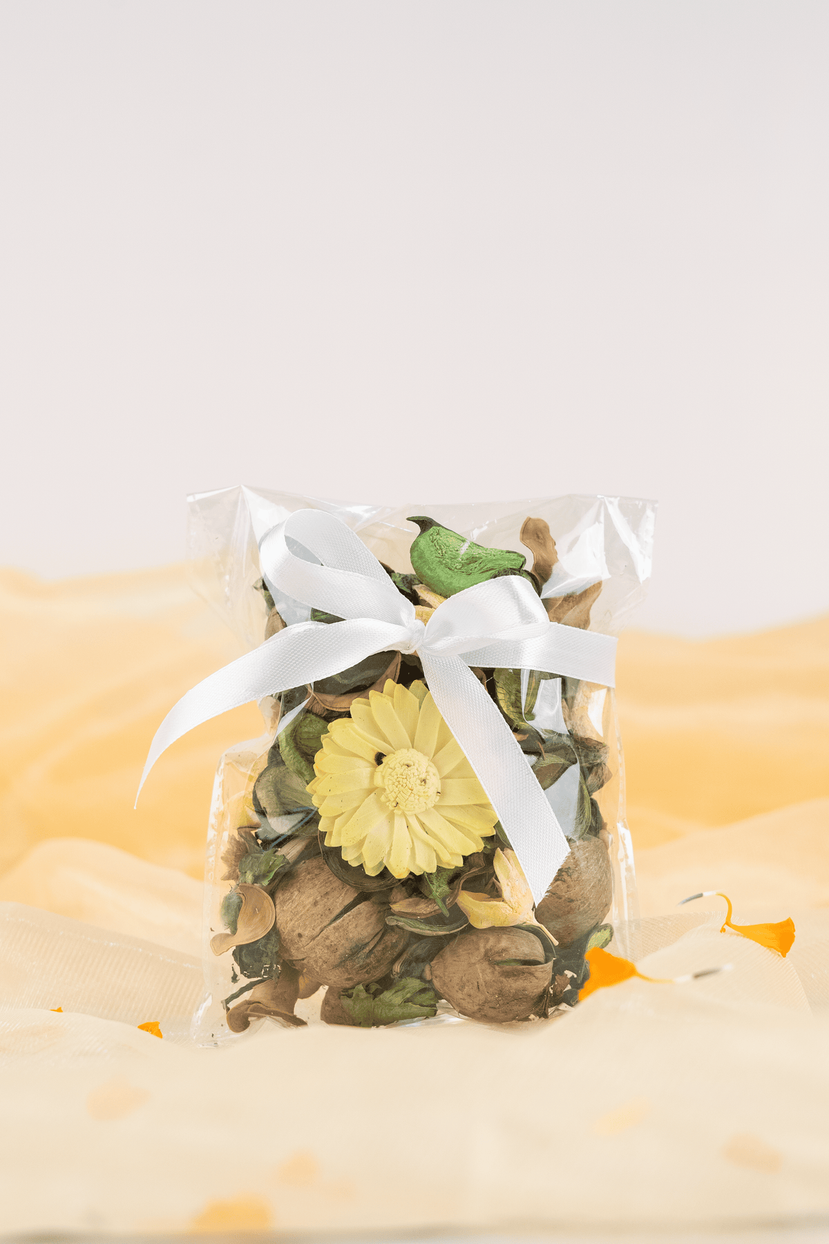 Our attention to detail doesn't stop at the packaging product. Each gift is thoughtfully assembled with color-coordinated satin ribbons and adorned with flower decorations, adding an extra touch of elegance and joy.