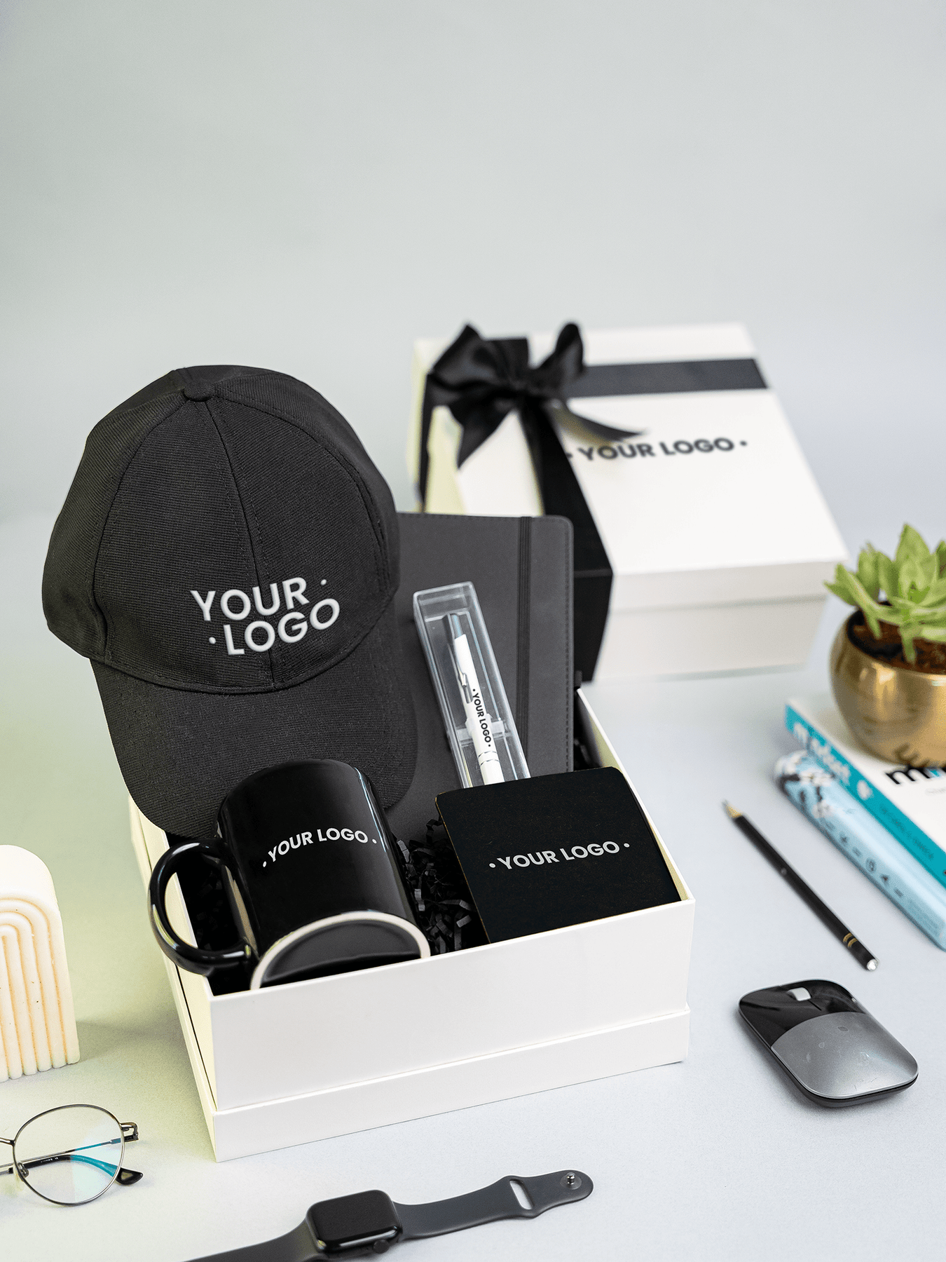 All items are neatly packed in a premium reusable box that reflects your company’s values and attention to detail.