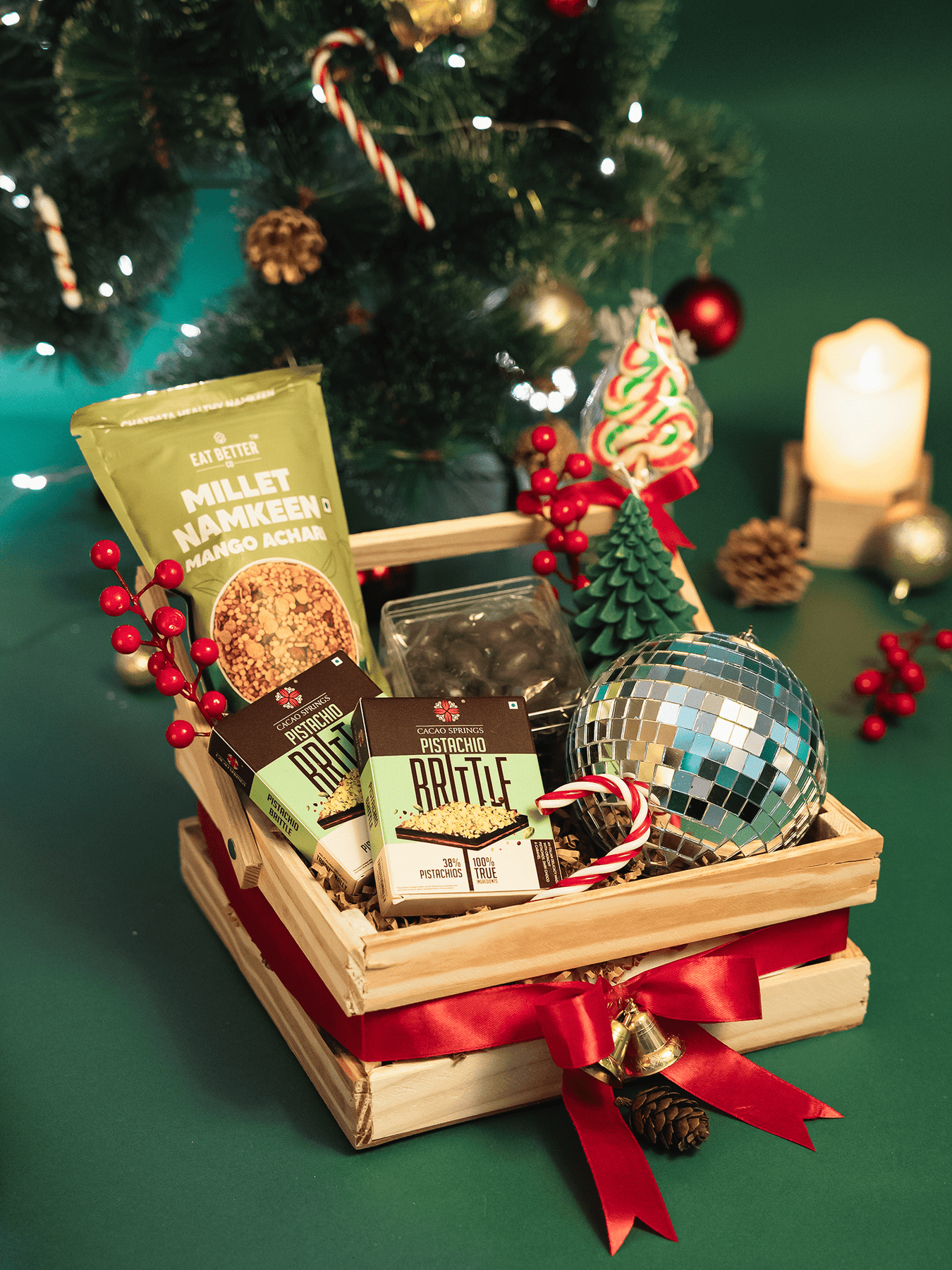 Make this Christmas unforgettable with the Twinkle & Cheer, a festive Christmas gift hamper thoughtfully designed to spread holiday cheer. Packed with premium treats, delightful décor, and heartwarming surprises, this box is the perfect choice for gifting loved ones, colleagues, or clients. Presented in a beautifully reusable keepsake box, it’s the ideal combination of elegance and practicality.